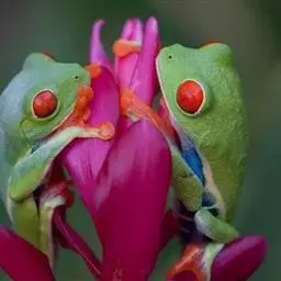箭毒蛙图片(3) 箭毒蛙体型小,通常长仅1~5公分(0.5~2寸),但非常显眼,颜色为黑与艳红、黄、橙、粉红、绿、蓝的结合。栖居地面或靠近地面,全部属于毒蛙科(Dendrobatidae),但并非所有170种都有毒。箭毒蛙具有某些最强的毒素。这种两栖类身体各处散布的毒腺会产生一些影响神经系统的生物碱。