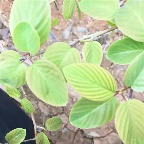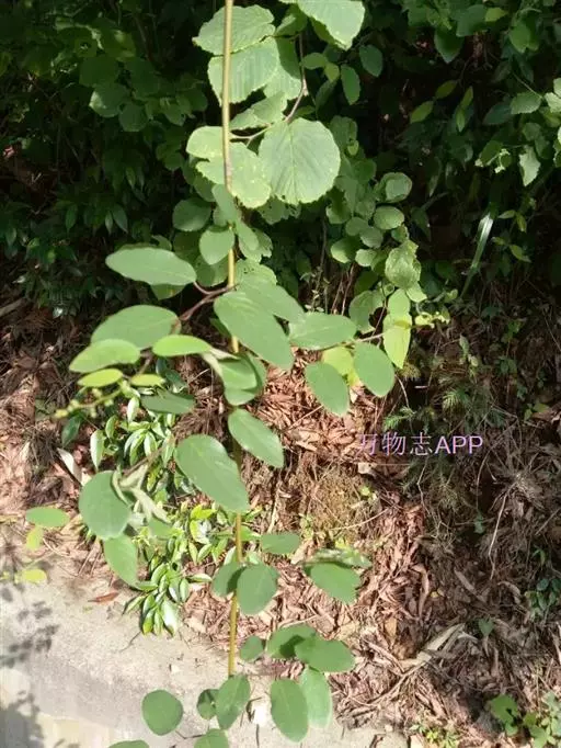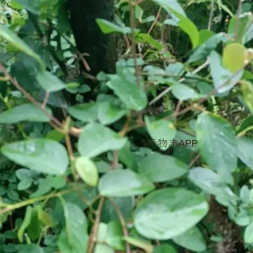 藤状或攀援灌木,高达5米:幼枝无毛,老枝黄褐色,平滑无毛。叶纸质至厚纸质,互生或在短枝顶端簇生,卵状椭圆形或卵状矩圆形,长3-6厘米,宽1.6-3.5厘米,顶端圆形或钝,常有小尖头,基部圆形或近心形,上面绿色,无毛,下面灰白色,仅脉腋被疏微毛,侧脉每边8-10条;叶柄纤细,长1.2-2.6厘米,带红色,无毛。
