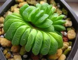 玉米石是景天科、景天属植物。多年生草本多浆植物。植株低矮丛生,多分枝。叶膨大成圆筒形、卵形或近小球形,…