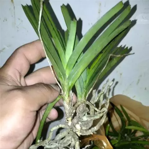 风兰 H.H.Hu):植株高8-10厘米。茎长1-4厘米,稍扁,被叶鞘所包。叶厚革质,狭长圆状镰刀形。…