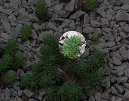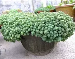 薄雪万年草别名矶小松,景天科景天属多年生草本植物,其细小的蓝绿色棒状叶片环绕生长于茎端,…