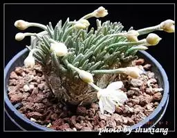 京之华锦是独尾草科瓦苇属的一种植物。也叫凝脂菊,为京之华的斑锦变异品种,植株群生,…