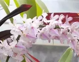 指甲兰是兰科指甲兰属植物。其茎粗壮;叶带状;总状花序疏生数朵花;萼片和花瓣淡白色,…