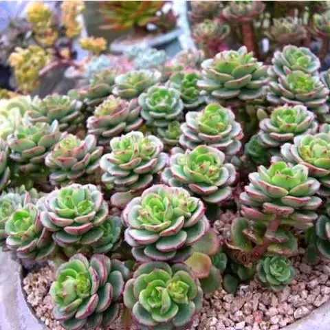 乙姬牡丹为景天科景天属多肉植物,有茎,叶互生,排列成莲座状,匙形,表面光洁,正面平坦,背面隆起,肉…