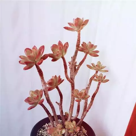大和锦是景天科拟石莲花属的多肉植物。肉质叶排成紧密的莲座状,广卵形至散三角卵形,背面突起呈龙骨状,…