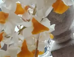 黄石斛:茎直立或下垂,多少肉质,细圆柱形,不分枝,具多数节。叶革质,长圆状披针形,…