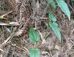 广东石斛:茎直立或斜立,细圆柱形,不分枝,具少数至多数节。叶革质,二列、数枚,互生于茎的上部,狭长…