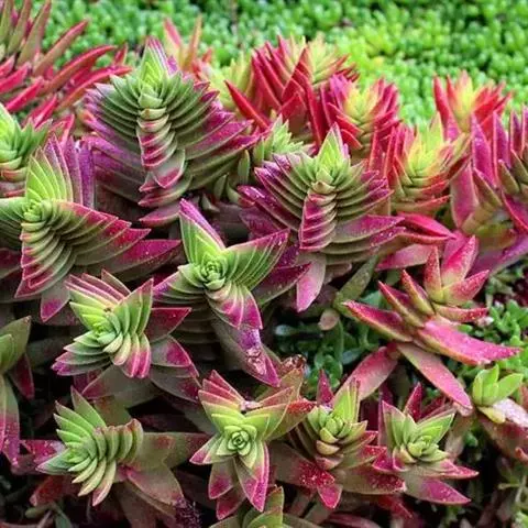 茜之塔 Toelken)是景天科青锁龙属多年生肉质草本植物。茜之塔叶交互对生,紧密排列,三角形,绿色,…