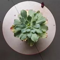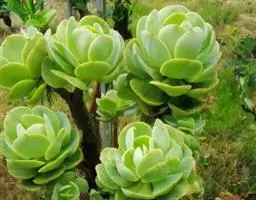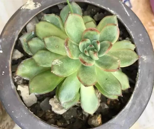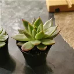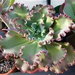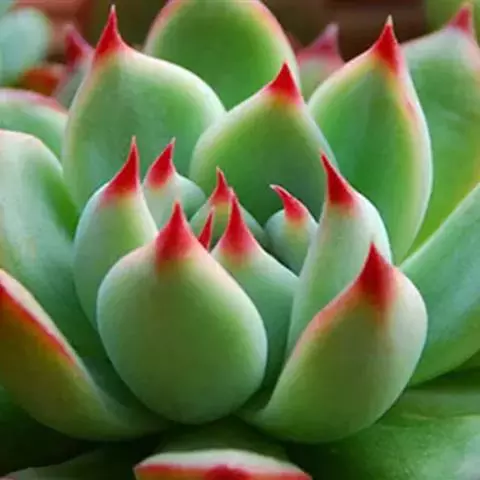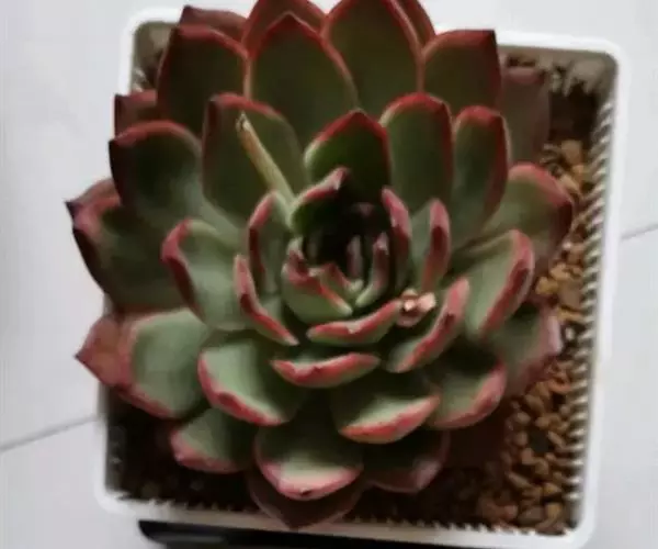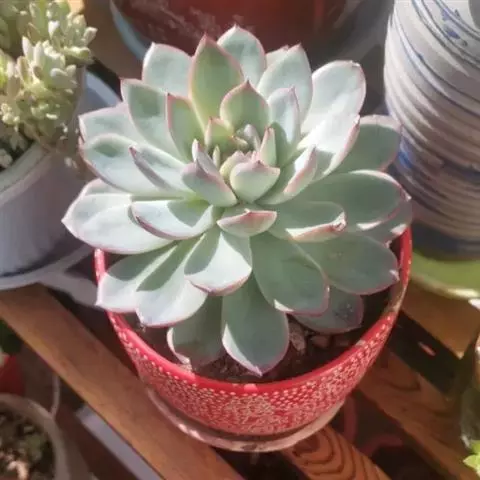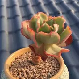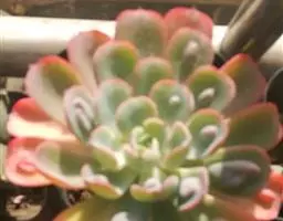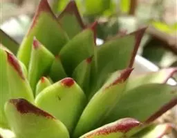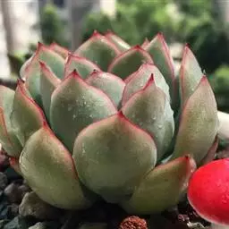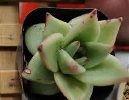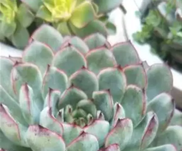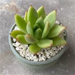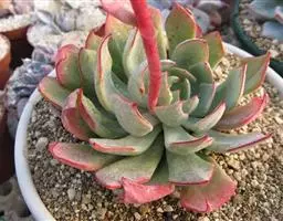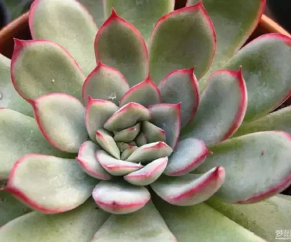 多年生肉质草本植物,又名红边石莲花。叶匙形,植株呈莲座状,叶面浅绿色,叶缘有红边。花期春季至初夏,花小,黄色 。