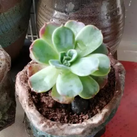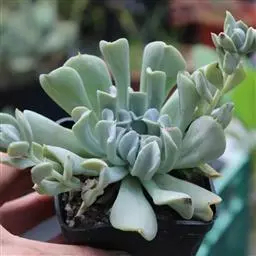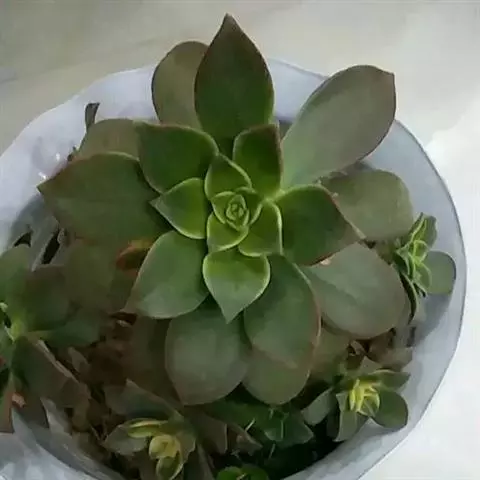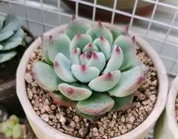 大和锦是景天科拟石莲花属的多肉植物。肉质叶排成紧密的莲座状,广卵形至散三角卵形,背面突起呈龙骨状,…