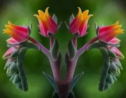 叶子勺形,叶尖有红边,日照充足的情况下叶边会变红。整株植物呈一朵莲花造型。花朵是铃铛形的,花色是黄色。花期春季。
