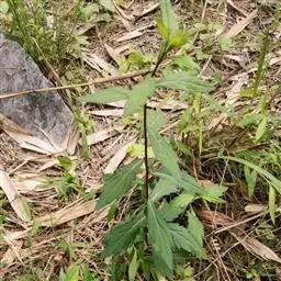 多年生草本,根状茎粗壮。 茎直立,高40-100厘米,细或粗壮,有棱及沟,被柔毛或粗毛,上部有时屈折,有上升或开展的分枝。 下部叶在花期枯落,叶片宽卵圆形,急狭成长柄;中部叶椭圆形或长圆状披针形,长5-15厘米,宽1-5厘米,中部以上急狭成楔形具宽翅的柄,顶端渐尖,边缘有3-7对浅或深锯齿;上部叶渐小,有浅齿或全缘,全部叶纸质,上面被短糙毛,下面浅色被短柔毛常有腺点,或两面被短茸毛而下面沿脉有粗毛,有离基(有时长达7厘米)三出脉,侧脉3-4对,网脉常显明。