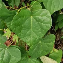 蝙蝠葛的根茎。味苦,性寒;有小毒;归肺、胃、大肠经;具有清热解毒、祛风止痛的功效;主治咽喉肿痛、热毒泻痢、风湿痹痛等病症。现代药理研究认为,北豆根具有一定的抗肿瘤作用,可用于治疗肝癌、喉癌、食道癌等。