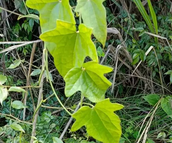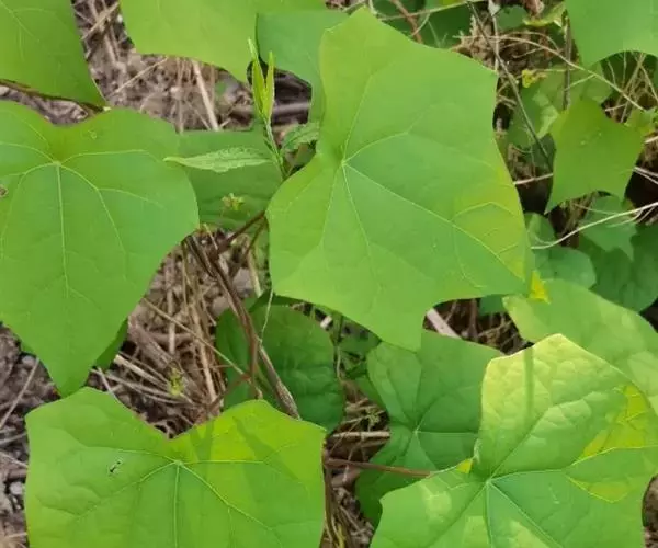 草质、落叶藤本,根状茎褐色,垂直生,茎自位于近顶部的侧芽生出,一年生茎纤细,有条纹,无毛。叶纸质或近膜质,轮廓通常为心状扁圆形,长和宽均约3-12厘米,边缘有3-9角或3-9裂,很少近全缘,基部心形至近截平,两面无毛,下面有白粉;掌状脉9-12条,其中向基部伸展的3-5条很纤细,均在背面凸起;叶柄长3-10厘米或稍长,有条纹。