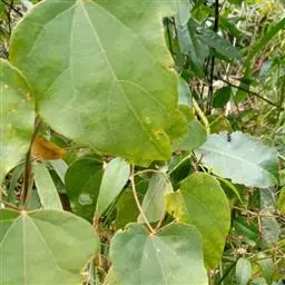 蝙蝠葛(学名:Menispermum dauricumDC.)是为防己科蝙蝠葛属植物,草质、落叶藤本,根状茎褐色,垂直生,茎自位于近顶部的侧芽生出,一年生茎纤细,有条纹,无毛。叶纸质或近膜质,长和宽均约3-12厘米;叶柄长3-10厘米或稍长,有条纹。圆锥花序单生或有时双生,有细长的总梗,有花数朵至20余朵,花密集成稍疏散。核果紫黑色;果核宽约10毫米,高约8毫米,基部弯缺深约3毫米。花期6-7月,果期8-9月。