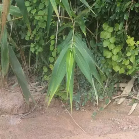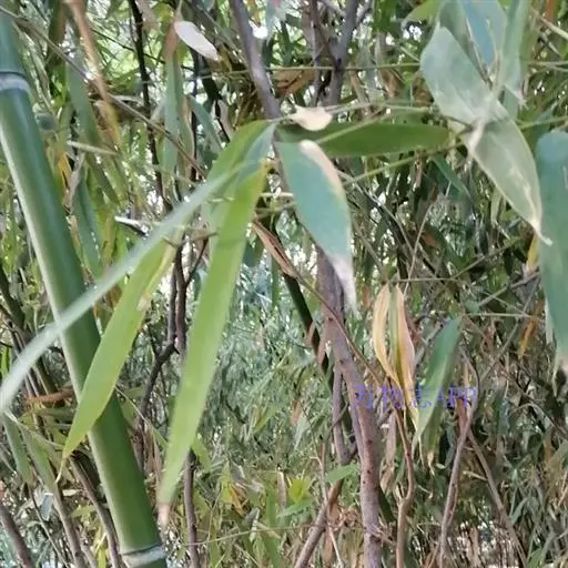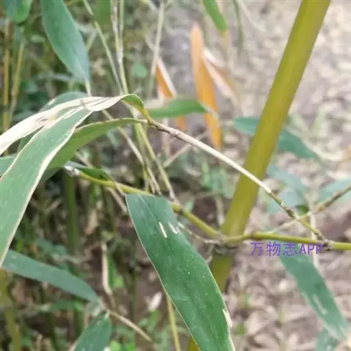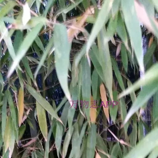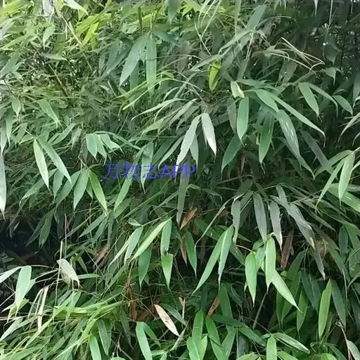 形态特征:多年生竹类,地下茎匍匐,秆高约3m,直径1~l.5m,箨甚长,简期几抱没节间,外表粗糙,具刺毛,不易脱落,节间lO~20cm,上端节上着生细枝,3出或多数,亦具有箨或无箨,叶舌片黑褐色,密生毛茸,假叶长卵形,锐尖头,叶粗革质,平行脉宽2~3m,1小枝叶约l~3枚。叶柄扁平,叶片披针形革质,叶背带粉色,密生短刚毛,尤以渐尖锐尖,楔脚或圆脚,长l0~20cm,宽1.5~2cm,极少开花。