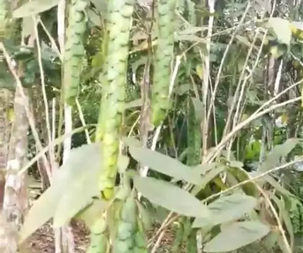 四季竹:这是最近几年引进青神的优质竹种。丛生型,四季生笋而得名。慈竹属的一种,最大的特点是秆粗大高直,一根就有几十斤重,纤维细腻,繁殖生长快,是造纸的好材料,经济价值大。青神西龙、观金、桂花、白果、罗湾等乡镇,有上十万亩此竹基地。这种竹原产于湖南沅陵县大坪乡。