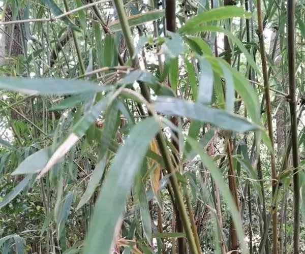 墨竹:散生型,是珍稀竹种。秆和枝都是黑色而得名;笋尖外壳呈红褐色,一年后成材。是制作笛、箫管乐器的最佳材料。青神个别地方少有。