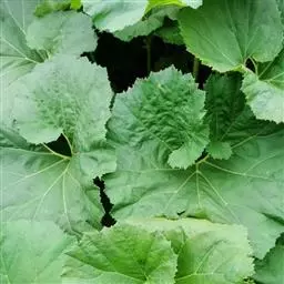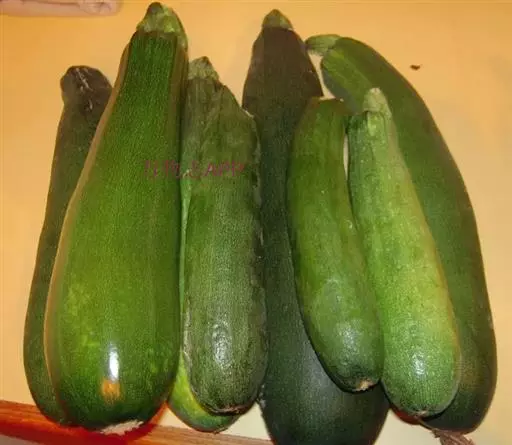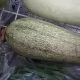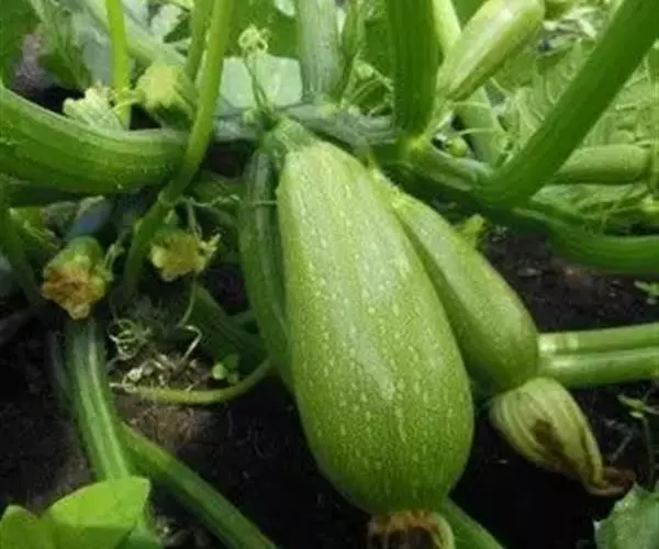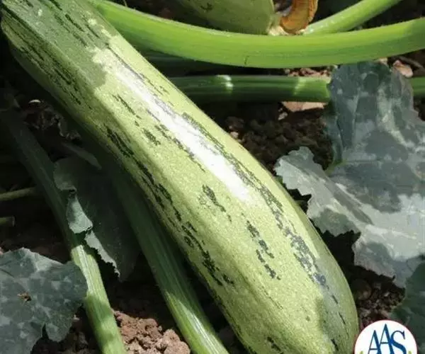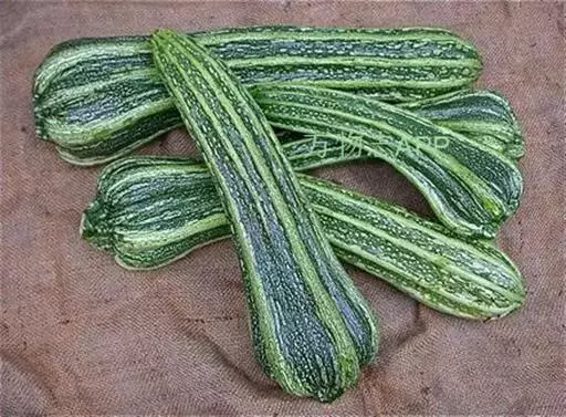 花叶西葫芦 又名阿尔及利亚西葫芦。中国北方地区普遍栽培。蔓较短,直立,分枝较少,株形紧凑,适于密植。叶片掌状深裂,狭长,近叶脉处有灰白色花斑。主蔓第五至六节着生第一雌花,单株结瓜3-5个。瓜长椭圆形,瓜皮深绿色,具有黄绿色不规则条纹,瓜肉绿白色,肉质致密,纤维少。