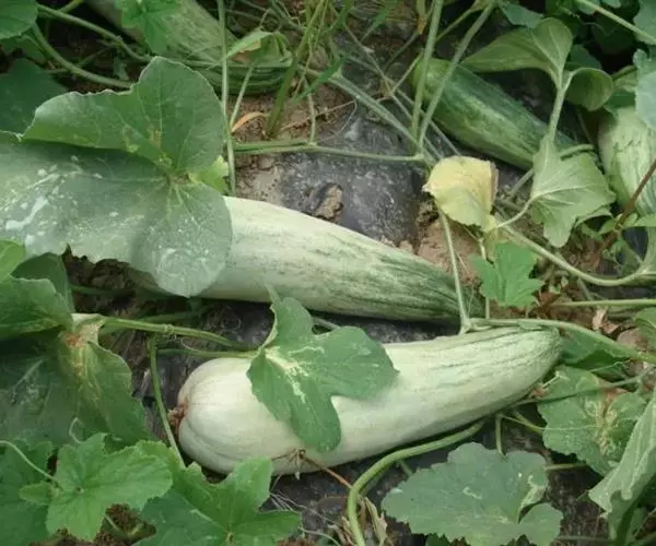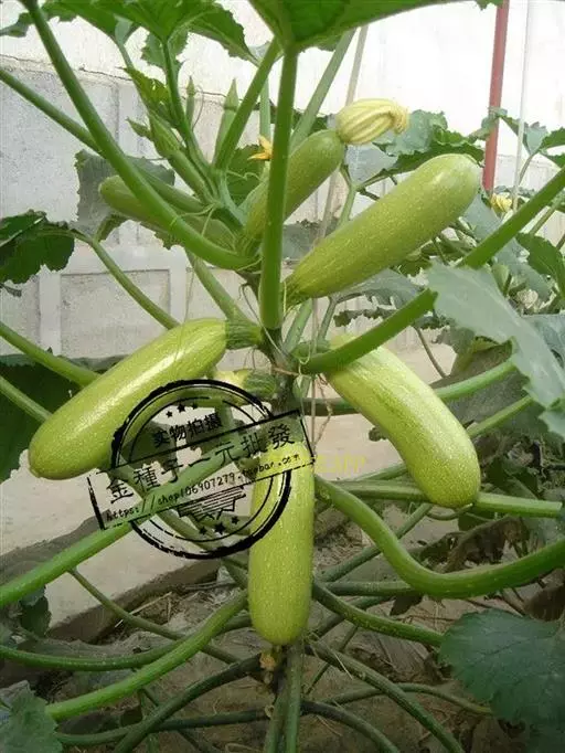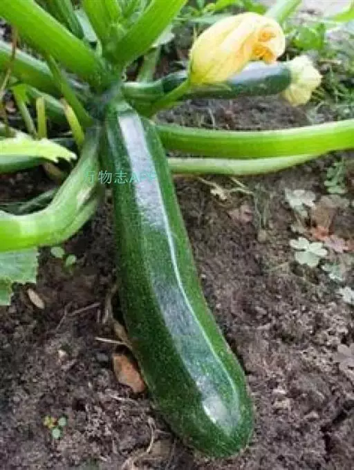 植物匍匐生长,茎蔓长2.5米左右,分枝性中等。叶三角形,浅裂,绿色,叶背多茸毛。主蔓第九节以后开始结瓜,单株结瓜2-3个。瓜圆筒形,中部稍细。