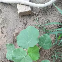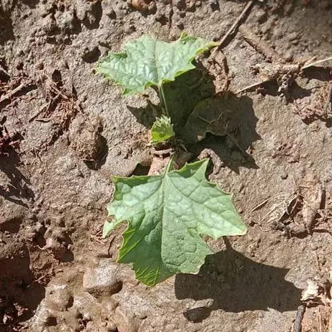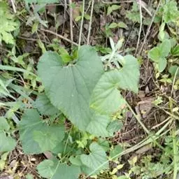 一年生蔓生草本;茎有棱沟,有短刚毛和半透明的糙毛。叶柄粗壮,被短刚毛,长6-9厘米;叶片质硬,挺立,三角形或卵状三角形,先端锐尖,边缘有不规则的锐齿,基部心形,弯缺半圆形,深0.5-1厘米,宽3-4厘米,上面深绿色,下面颜色较浅,叶脉在背面稍凸起,两面均有糙毛。