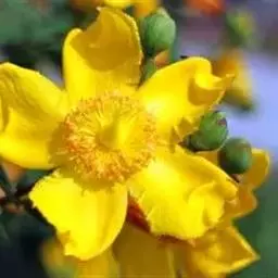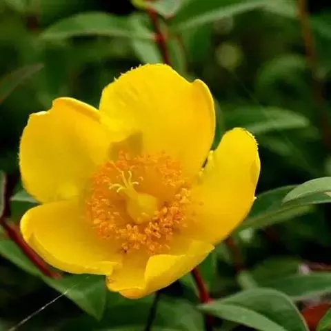 金丝梅是金丝桃科金丝桃属丛状灌木。全株无毛,枝条纵线棱,褐色或红褐色;单叶对生,…
