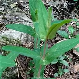 多年生草本,高0.3-0.5米,全体无毛。茎多数,圆柱形,具多数叶,不分枝或有时在上部具腋生小枝。叶无柄,叶片向茎基部者渐变小而靠近,茎最下部者为倒卵形,向茎上部者为卵形或卵状椭圆形,长2-5厘米,宽1-2.5 (-3)厘米,先端钝形且常微缺,基部心形而抱茎,全缘,坚纸质,上面绿色,下面白绿色,散布淡色腺点,侧脉约4对,与中脉在上面凹陷,下面凸起,脉网稀疏,只在下面隐约可见。