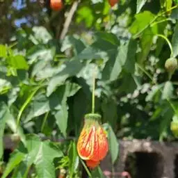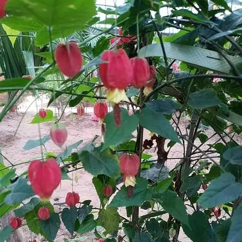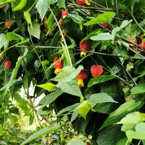 叶子为桃型,说是心型也贴边,正反面大绒一样光滑,摸上去手感极佳,花为黄色,小巧,花落后结出青麻果,铃铛状,口朝上,青果期种子是白色的,茄子籽大小,吃起来微微有甜味,秋天里果实成熟,铃铛和里面的果实都变成黑色。