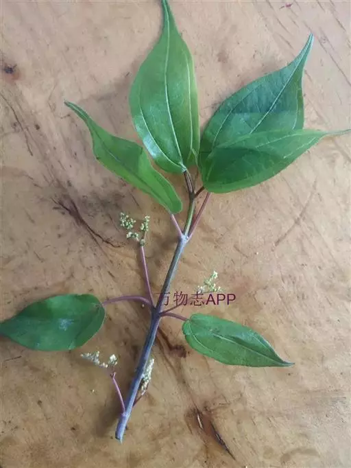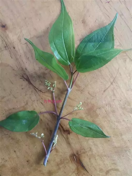 雄花带绿黄色或紫红色,近无梗,在芽时长约1.5毫米;花被片4,合生至中部,倒卵形,内凹,外面近先端有短角突起;雄蕊4;退化雌蕊极小,圆锥形;雌花带绿色,近无梗;花被片3,不等大,果时中间一枚卵状长圆形,背面增厚略呈龙骨状,长及果的1/2或更长;侧生的二枚三角形,稍增厚,比长的一枚短1/2或更长,退化雄蕊椭圆状长圆形,略长过短的花被片。