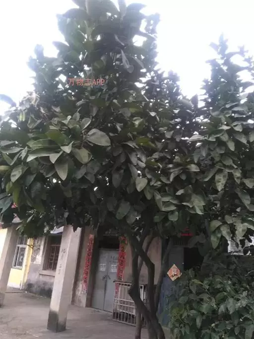 柚 乔木。嫩枝、叶背、花梗、花萼及子房均被柔毛,嫩叶通常暗紫红色,嫩枝扁且有棱。叶质颇厚,色浓绿,阔卵形或椭圆形,连冀叶长9-16厘米,宽4-8厘米,或更大,顶端钝或圆,有时短尖,基部圆,翼叶长2-4厘米,宽0.5-3厘米,个别品种的翼叶甚狭窄。