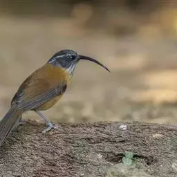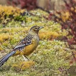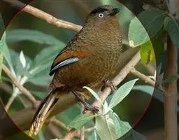 大噪鹛:中型鸟类,体长32-36厘米。额至头顶黑褐色,背栗褐色满杂以白色斑点,…