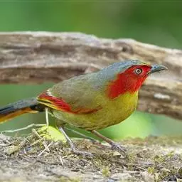 红翅薮鹛是噪眉科、薮鹛属中型鸟类,体长21-24厘米。头顶灰褐色,头侧和颈侧赤红色,上体橄榄褐色,…