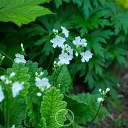 灌木,高约1米;枝及小枝甚粗壮,节间短。叶较小,矩圆状椭圆形,两端楔尖,长2~3厘米,中部以上边缘具钝锯齿,侧脉与小脉不明显。花序极小,直径约1.5厘米。花密生于序轴的第一级分枝上;花冠白色,较短,筒长约5毫米;花药堇紫色。花期5月。