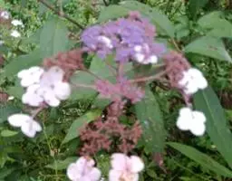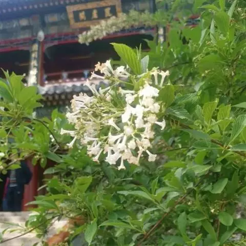 圆锥花序生于具1对叶的短枝之顶,长 (5-) 7.5-10厘米,通常下垂,被簇状短毛或近无毛,有时毛密而呈绒状,总花梗长2-6厘米,花无梗或有短梗,生于序轴的第一至第三级分枝上;萼筒筒状,长2.5-3毫米,通常无毛,有时具红褐色微腺,萼齿卵状三角形,长约1毫米,顶钝,无毛或被簇状微毛;花冠白色或淡红色,高脚碟状,筒长5-6毫米,裂片开展,长2-3毫米,顶端圆;雄蕊生于花冠筒顶端,花丝极短,花药黄白色,微外露;花柱高出萼齿。