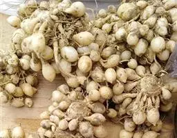 茎:茎分为营养茎和花茎,一、二年生营养茎短缩变态成盘状,陈称为鳞茎盘,由于分蘖和跳根,短缩茎逐渐向地表延生生长,平均每年伸长1.0-2.0cm,鳞茎盘下方形成葫芦状的根状茎。根状茎为贮藏养分的重要器官。