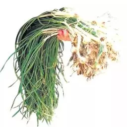韭菜,(学名:A. tuberosum Rottl. ex Spreng.)别名:丰本、草钟乳、起阳草、懒人菜、长生韭、壮阳草、扁菜等;属百合科多年生草本植物,具特殊强烈气味,根茎横卧,鳞茎狭圆锥形,簇生;鳞式外皮黄褐色,网状纤维质;叶基生,条形,扁平;伞形花序,顶生。