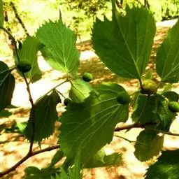 紫弹树又名:牛筋树、朴树、中筋树、沙楠子树、香丁、黄果朴、紫弹朴、构皮树。落叶小乔木至乔木,高达18米,树皮暗灰色;当年生小枝幼时黄褐色,密被短柔毛,后渐脱落,至结果时为褐色,有散生皮孔,毛几可脱净;冬芽黑褐色,芽鳞被柔毛,内部鳞片的毛长而密。叶宽卵形、卵形至卵状椭圆形,长2.5-7厘米,宽2-3.5厘米,基部钝至近圆形,稍偏斜,先端渐尖至尾状渐尖,在中部以上疏具浅齿,薄革质,边稍反卷,上面脉纹多下陷,被毛的情况变异较大,两面被微糙毛,或叶面无毛,仅叶背脉上有毛,或下面除糙毛外还密被柔毛;叶柄长3-6毫米,幼时有毛,老后几脱净。托叶条状披针形,被毛,比较迟落,往往到叶完全长成后才脱落。果序单生叶腋,通常具2果(少有1或3果),由于总梗极短,很像果梗双生于叶腋,总梗连同果梗长1-2厘米,被糙毛;果幼时被疏或密的柔毛,后毛逐渐脱净,黄色至桔红色,近球形,直径约5毫米,核两侧稍压扁,侧面观近圆形,直径约4毫米,具4肋,表面具明显的网孔状。花期4-5月,果期9-10月。
