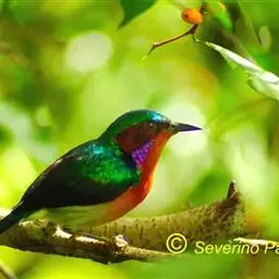 纹背捕蛛鸟:为太阳鸟科捕蛛鸟属的鸟类。是太阳鸟科中体型较大的一种,体重25-45克,…