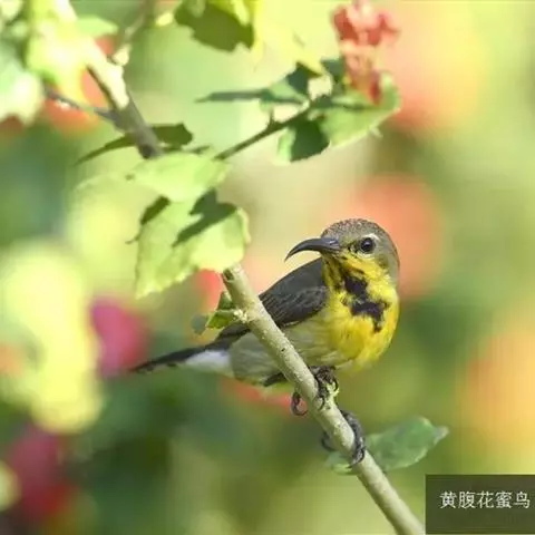 黄腹花蜜鸟是雀形目太阳鸟科花蜜鸟属鸟类。体型较小、喙略短而弯、腹部黄色。…