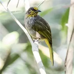 长嘴捕蛛鸟(学名:Arachnothera longirostra),小型鸟类,体长14-16厘米。嘴长而尖向下弯曲。上体橄榄绿色,眼先和短眉灰白色,两翅和尾暗褐色,外翈羽缘橄榄绿色,羽端灰褐色,自嘴基沿喉侧有一黑色纵纹。颏、喉灰白色,其余下体鲜黄色,胸簇羽桔黄色。雌鸟无鲜艳的胸簇羽。常单独或成对活动,很少成群。4-6月是繁殖期。
