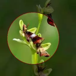 总花梗生于上部叶腋,长于叶柄,长3.5-6厘米,具1-2花;花梗长10-15毫米,中部以上有苞片;苞片披针形或线状披针形,长3-4毫米,宿存。花大,淡红色,长3.5-4厘米;侧生萼片2,绿色,斜宽卵形或近圆形,长8-10毫米,宽5-6毫米,背面中肋不增厚。旗瓣圆形,长7-12毫米,兜状,背面中肋增厚,具狭龙骨状突起;翼瓣具短柄,长2.5厘米,2裂,基部裂片半圆形,上部裂片较长,长圆形,顶端钝,背部具明显的小耳。唇瓣檐部漏斗状,长1.5厘米,口部平,宽15毫米,先端具小尖,基部急狭成长2-2.5厘米,内弯顶端内卷的距,具粉红色纹条。花丝线形,顶端稍大,花药卵圆形,顶端钝。子房纺锤形,直立,顶端喙尖。
