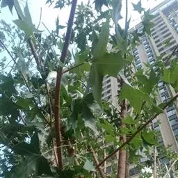落叶乔木,高约10米。树皮平滑,褐色或深褐色。小枝细瘦,无毛,当年生校绿色或淡绿色,多年生枝橄榄褐色或红褐色。冬芽卵圆形,外部的鳞片褐色一边缘具纤毛,内部的鳞片外侧密被长柔毛。叶薄纸质或膜质,基部深心脏形,外貌近于圆形,直径8-12厘米,常7裂,有时基部裂片再分为小裂片2枚;裂片卵状长圆形,稀卵形或三角卵形,先端锐尖、稀尾状锐尖,边缘具不整齐的紧贴的钝尖锯齿,裂片间的凹缺成很狭窄的锐尖,上面绿色,无毛,下面淡绿色,除叶脉上有长柔毛及脉腋有丛毛外,其余部分近于无毛,主脉及侧脉在两面均凸起;叶柄细瘦,长达7厘米,嫩时被长柔毛,渐老时无毛。
