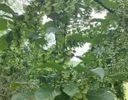 翅果淡黄褐色,常生成下垂的圆锥果序;小坚果凸起,近于卵圆形,长6毫米,宽5毫米;翅宽1-1.2厘米,连小坚果长3-3.5厘米,张开近于水平。花期6月,果期10月。