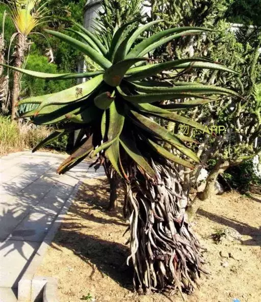 木立芦荟茎高可达1~2米,茎上长侧芽,其形像树。