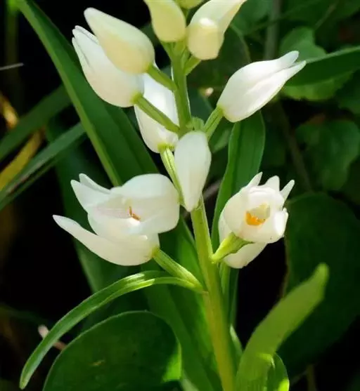 头蕊兰(学名:Cephalanthera longifolia (L.) Fritsch):地生草本,高20-47厘米。茎直立,下部具3-5枚排列疏松的鞘。叶4-7枚;叶片披针形、宽披针形或长圆状披针形。总状花序长1.5-6厘米,具2-13朵花;花白色,稍开放或不开放;萼片狭菱状椭圆形或狭椭圆状披针形,具5脉;花瓣近倒卵形,长7-8毫米,宽约4毫米,先端急尖或具短尖;唇瓣长5-6毫米,3裂,基部具囊。蒴果椭圆形,长1.7-2厘米,宽6-8毫米。花期5-6月,果期9-10月。