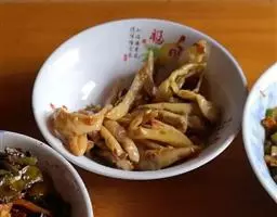 外焦内嫩、香辣霸气、口感鲜嫩、野性十足,是土匪猪肝最大的特点。大块大块的猪肝,配上本地的红辣椒、大蒜,入油锅于大火上爆炒几分钟即可。菜还没出锅,猪肝的香气就已经扑鼻而来,馋得你口水直往外冒。再看这盛“土匪猪肝”的器皿,大土陶碗,把这道菜那种原味、朴实的湘西风味映衬得更加活灵活现。大块猪肝不仅保留了湖南乡村本土的饮食特色,而且其口感依然脆嫩,香辣适中、鲜美可口。光从这道菜你就可以完全领略到湘式风味菜的美味精髓。