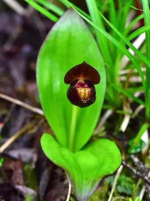绿花杓兰:植株高30-60厘米,具较粗短的根状茎。茎直立,被短柔毛,基部具数枚鞘,鞘上方具4-5枚叶。…
