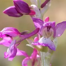 苞舌兰:假鳞茎扁球形,通常粗1-2.5厘米,被革质鳞片状鞘,顶生1-3枚叶。叶带状或狭披针形,…