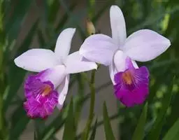 紫花苞舌兰:植株高达1米。假鳞茎卵状圆锥形,具3-5枚叶。叶质地薄,淡绿色,狭长,具折扇状的脉。…