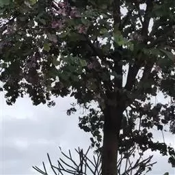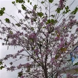 洋紫荆:落叶乔木;树皮暗褐色,近光滑;幼嫩部分常被灰色短柔毛;枝广展,硬而稍呈之字曲折,无毛。叶近…